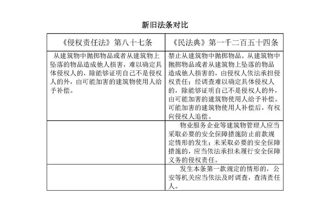 民法典颁布前,如果说高空抛物侵权责任的追究主要为救济受损者的权益而不得已进行“责任连坐”,那么,民法典颁布后的侵权责任规定有哪些不同?