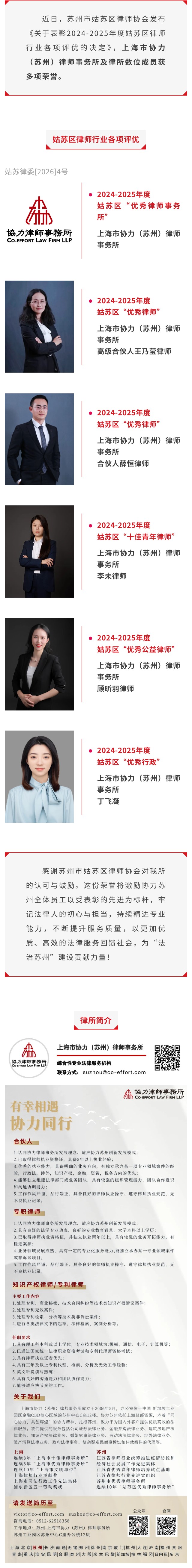 协力荣誉|协力苏州在2024—2025 年度姑苏区律师行业表彰中获得多项荣誉